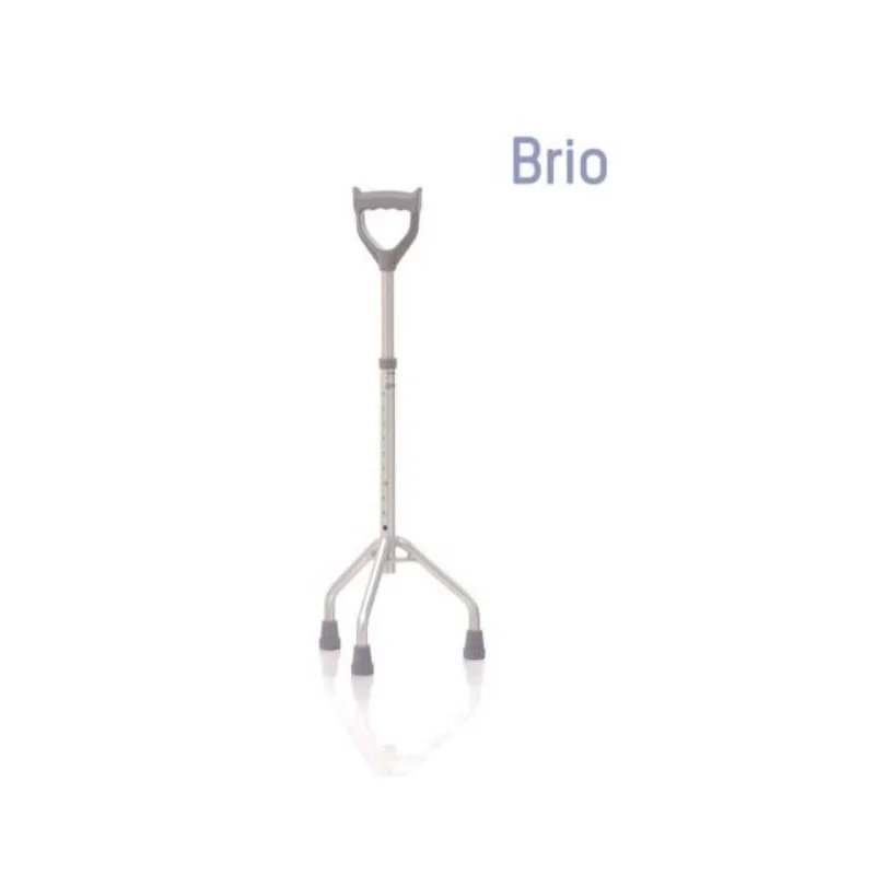 Tripode base larga con manico chiuso antiscivolo, impugnatura anatomica. Interamente realizzato in alluminio leggero anodizzato. Puntali antiscivolo in gomma morbida. Impugnatura in Polipropilene biocompatibile. Regolabile in altezza da 74 a 97 cm.
