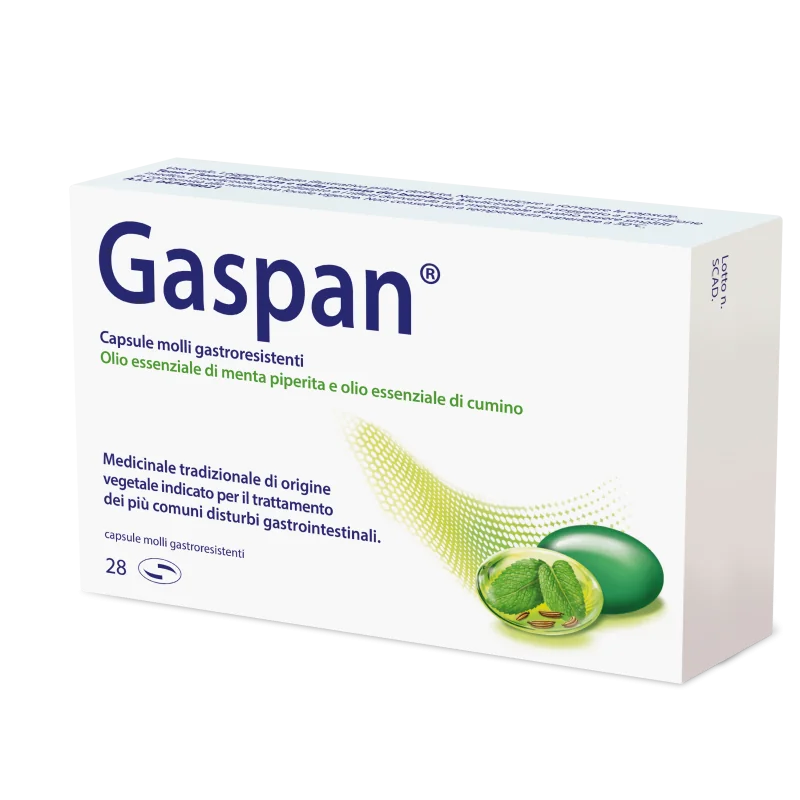 GASPAN è un medicinale tradizionale di origine vegetale contenente oli essenziali di menta piperita e olio di cumino.