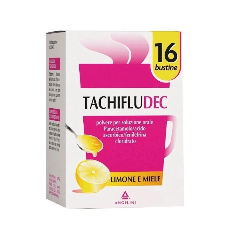 Tachifludec è un medicinale che contiene i principi attivi paracetamolo, acido ascorbico e fenilefrina cloridrato, si usa per il trattamento del dolore, della febbre e della congestione nasale. Tachifludec è utilizzato per il trattamento a breve termine dei sintomi del raffreddore e dell’influenza.