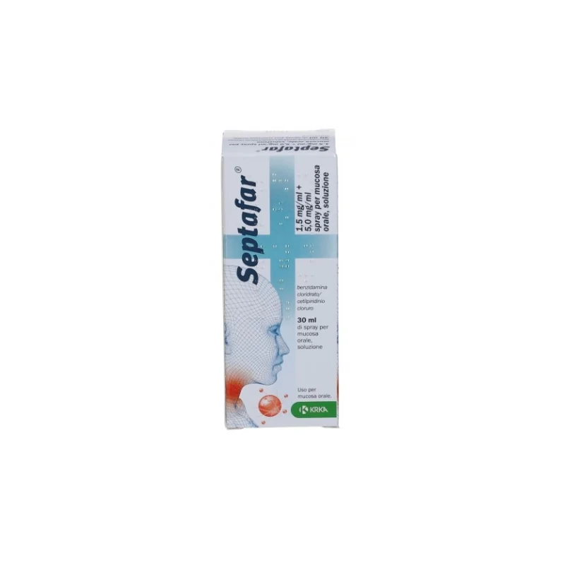 Septafar spray per mucosa orale, soluzione è un medicinale antinfiammatorio, analgesico ed antisettico per uso orale locale. Lo spray per mucosa orale disinfetta la bocca e la gola e riduce i segni di infiammazione della gola quali dolore, arrossamento, gonfiore, bruciore e funzione compromessa.