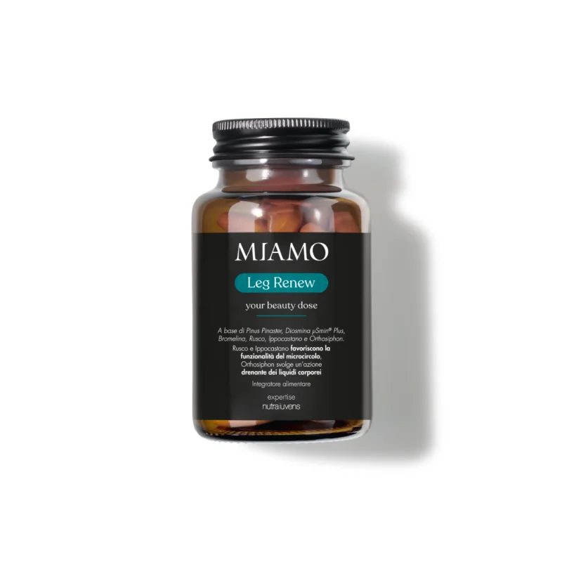 Miamo leg renew è un integratore a base di Bromelina, Diosmina, Ippocastano per favorire il microcircolo e drenare i liquidi.
