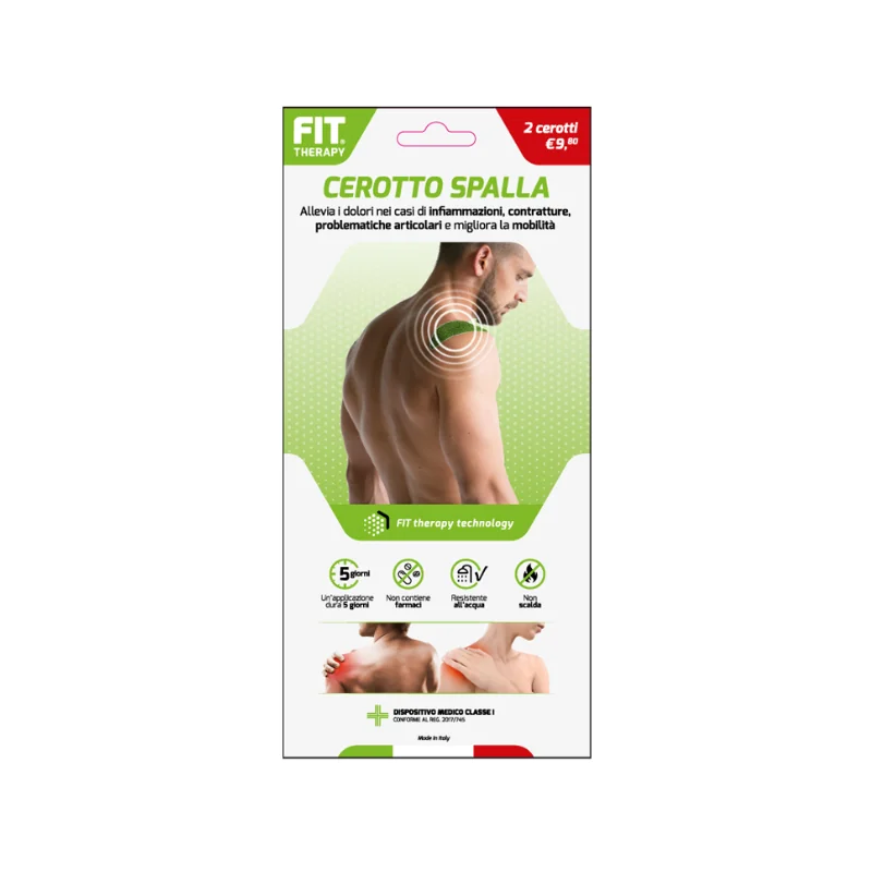 Rimuovere il cerotto dalla base. Applicare il cerotto sulla spalla, su pelle asciutta, pulita e priva di peli. Attendere circa due minuti per una migliore adesione del cerotto sulla pelle.
