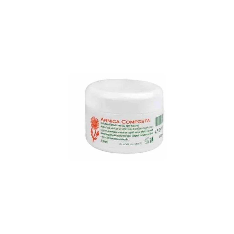 Sella Arnica Composta Pomata 100 Ml è un integratore preparato a partire dall' Arnica, pianta perenne della famiglia delle Composite. La Tintura Madre si prepara a partire dalla pianta intera e contiene flavonoidi a tropismo venoso, pigmenti carotenoidi ad azione antiemorragica, fenoli, lattoni ( tra cui l'elenalina, irritante cutaneo).