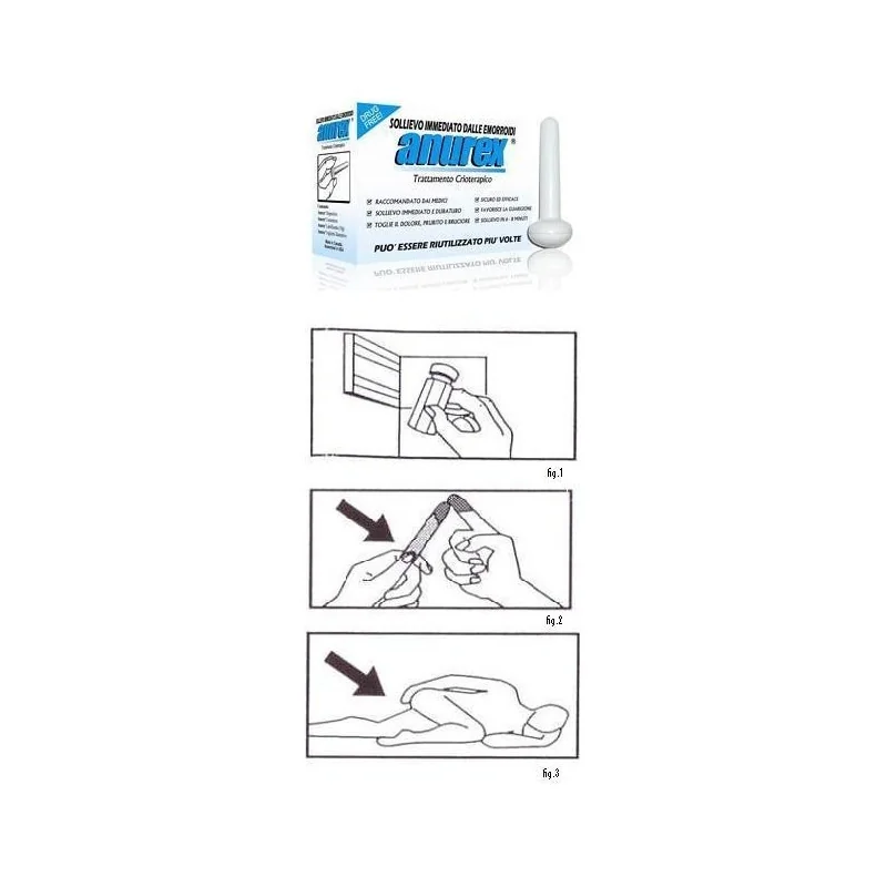 Dispositivo medico CE di classe I.Anurex permette l’applicazione diretta della crioterapia (terapia a freddo) per un immediato sollievo dai disturbi provocati dalle emorroidi, e ragadi anali.