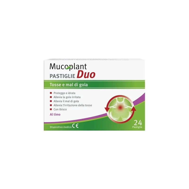 Durante la suzione gli estratti vegetali di Mucoplant PASTIGLIE Duo si sciolgono gradatamente posizionandosi come un film sulla mucosa di bocca e gola proteggendoli dall'irritazione.
