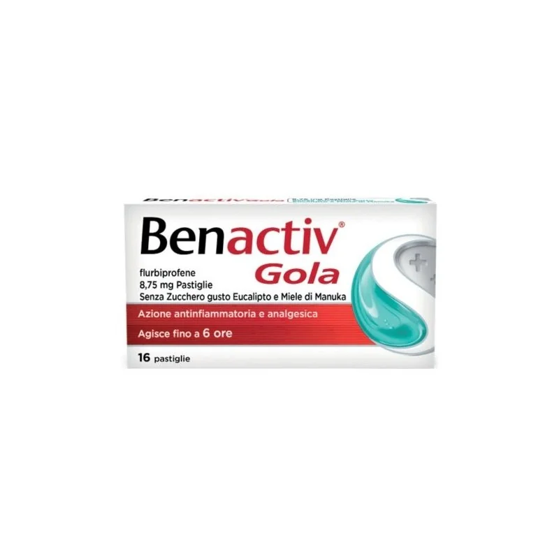 Le pastiglie Benactiv Gola a base di flurbiprofene aiutano a ridurre l'infiammazione alla gola, donando sollievo dal dolore e dal bruciore
