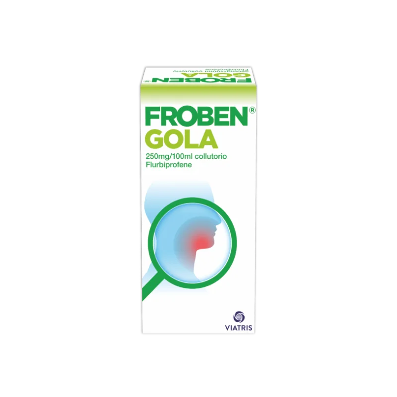 Froben Gola 250mg/100ml è un collutorio con una formulazione a base di flurbiprofene indicato per ridurre l'infiammazione alla mucosa orale, contrastando il dolore ed il gonfiore