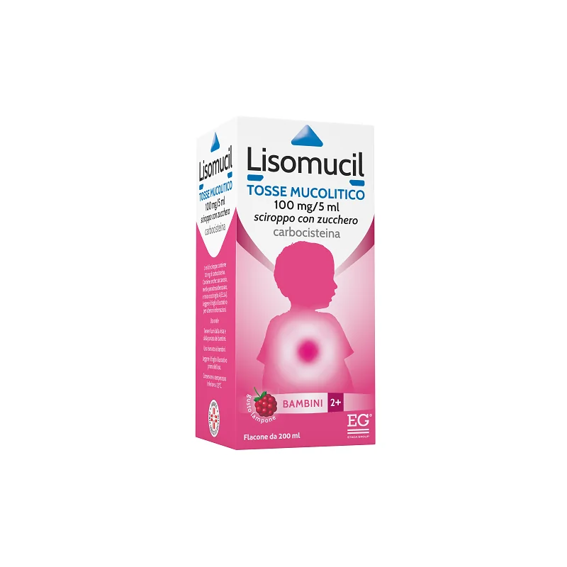 Lisomucil Tosse mucolitico 100 mg/5 ml contiene il principio attivo carbocisteina, che appartiene ad un gruppo di medicinali chiamati mucolitici, usati per facilitare l'eliminazione del muco dalle vie respiratorie nei bambini.