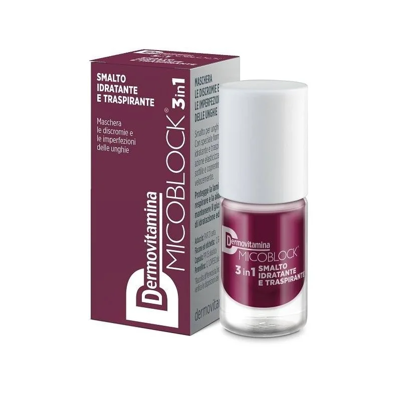 Dettagli Pasquali Dermovitamina Micoblock 3in1 Smalto Idratante Traspirante Prugna 5 Ml