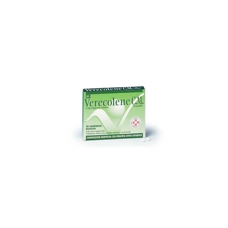 VERECOLENE C.M. 5 mg è un farmaco che contiene bisacodile come principio attivo che appartiene ad una classe di farmaci chiamati lassativi di contatto, che servono per facilitare l'eliminazione delle feci. L'effetto lassativo si ottiene grazie alla capacità che ha il bisacodile di ammorbidire le feci e di stimolare i movimenti intestinali.