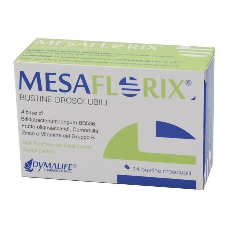 Dettagli Dymalife Pharmaceutical Mesaflorix 14 Bustine Orosolubili