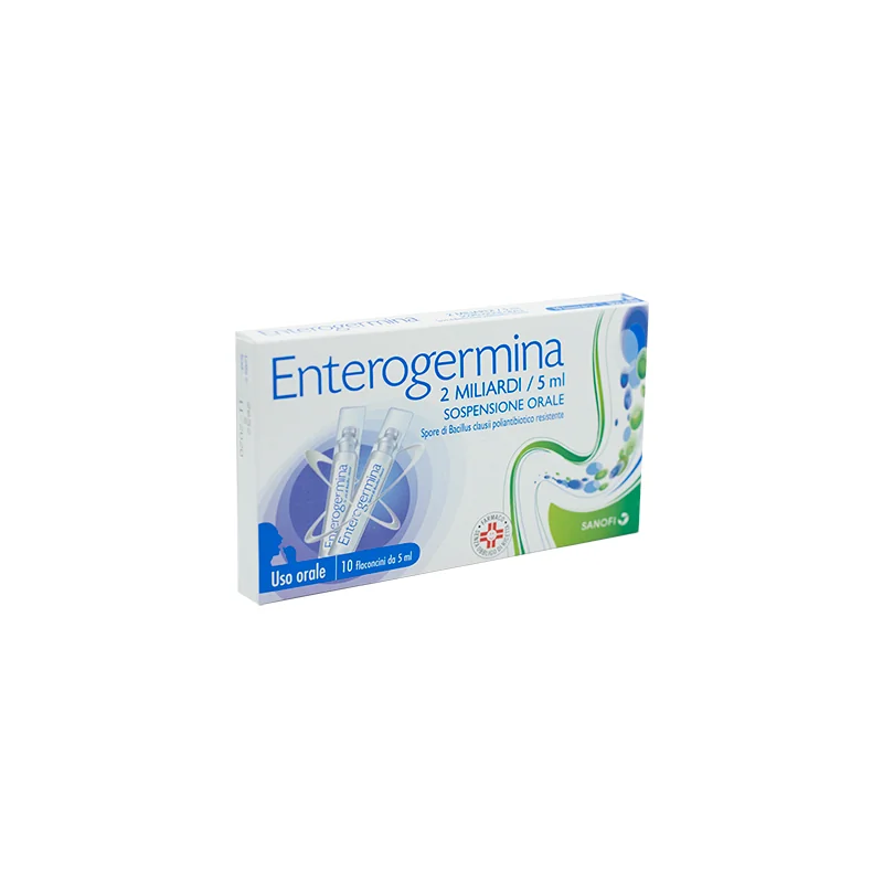 Enterogermina è un medicinale costituito da una sospensione di 4 ceppi (SIN, O/C, T N/R) di spore di Bacillus clausii, abitualmente presente nel'intestino, privo di capacità di causare malattie (privo di potere patogeno).