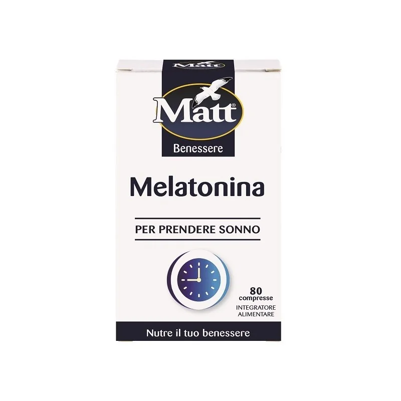 Integratore alimentare a base di melatonina. La melatonina è una sostanza naturalmente presente nel nostro organismo, che contribuisce alla riduzione del tempo richiesto per prendere sonno. La melatonina aiuta inoltre ad alleviare gli effetti del jet lag. Melatonina Matt grazie ai suoi benefici effetti è un valido aiuto per chi ha difficoltà durante le fasi di addormentamento.