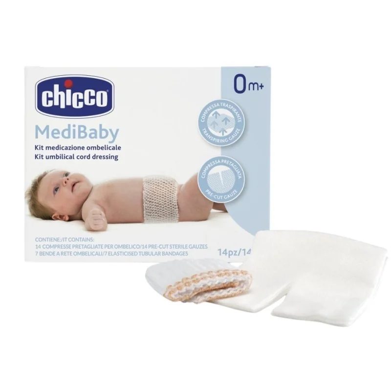 Kit Medicazione Ombelicale Chicco Medibaby 14 Compresse Pretagliate Per Ombelico + 7 Bende A Rete Ombelicali