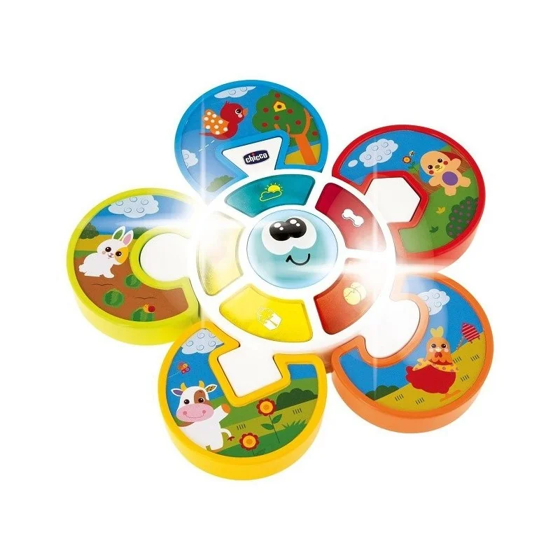 Colorato centro attività a forma di fiore con luci e suoci per scoprire i primi animali.