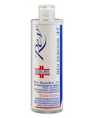 Igienizzante mani per pelli sensibili a base di Alcol ad alta concentrazione. Il sistema AT (Atopic Complex) reintegra i liquidi della pelle con un sistema di fermentati (Acido Oleico, Acido Linoleico e Acido Palmitico), Acido Ialuronico ed Aloe completano la sua efficacia per la cute degli atopici.