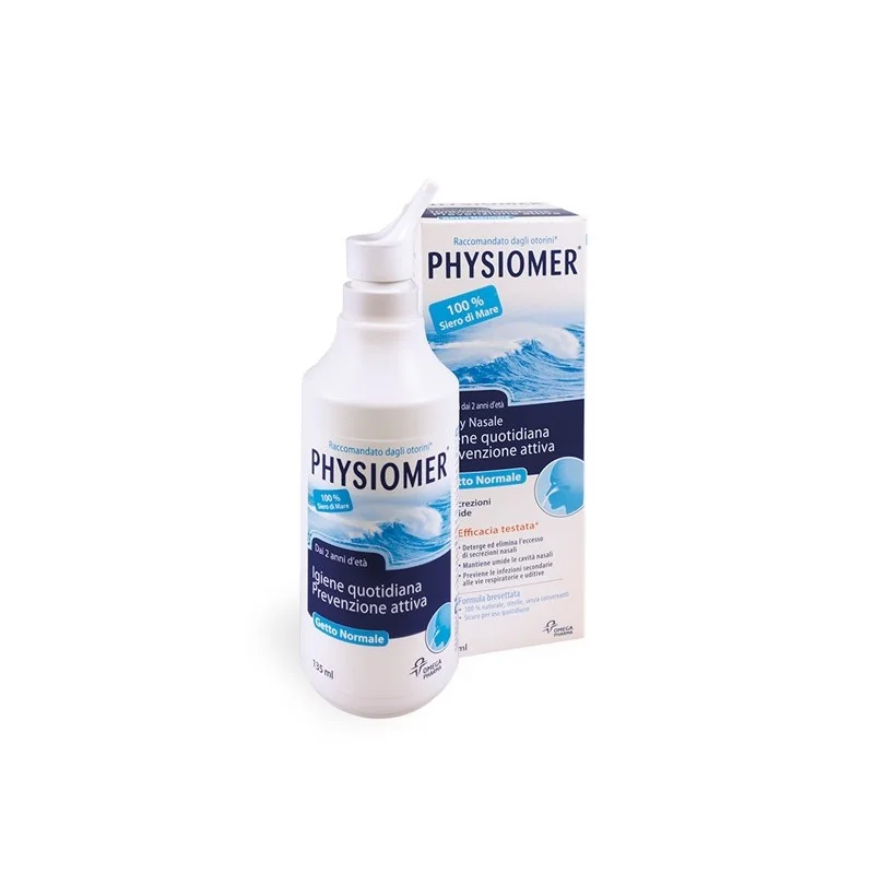 Il "siero di mare" Physiomer è composto al 100% da acqua di mare desalinizzata, ultrafiltrata e resa sterile in laboratorio, e conserva una combinazione completa di oltre 80 minerali ed oligoelementi, compresi calcio, magnesio, ferro, rame, manganese, zinco. Tutti questi minerali conferiscono a Physiomer un'azione anti-infiammatoria (che limita la diffusione delle infiammazioni) e rigenerante (effetto eutrofico), di gran lunga superiori a quelle delle comuni soluzioni saline. Physiomer allevia efficacemente i sintomi delle affezioni nasali e della zona sinusale dovuti ad infezioni alle vie respiratorie ed uditive, contribuisce alla riduzione dell'utilizzo di farmaci e riduce il manifestarsi di raffreddori e infezioni secondarie. Utilizzato quotidianamente, Physiomer umidifica la mucosa nasale e preserva il funzionamento naturale delle cavità nasali. Privi di agenti chimici e conservanti, i prodotti della linea Physiomer non pregiudicano il corretto funzionamento della mucosa nasale. La soluzione può essere utilizzata per periodi lunghi, ogniqualvolta necessaria senza alcun effetto collaterale o effetto rebound. Physiomer aiuta a ridurre l'utilizzo di decongestionanti a base di farmaci o antibiotici, che possono generare resistenza batterica.