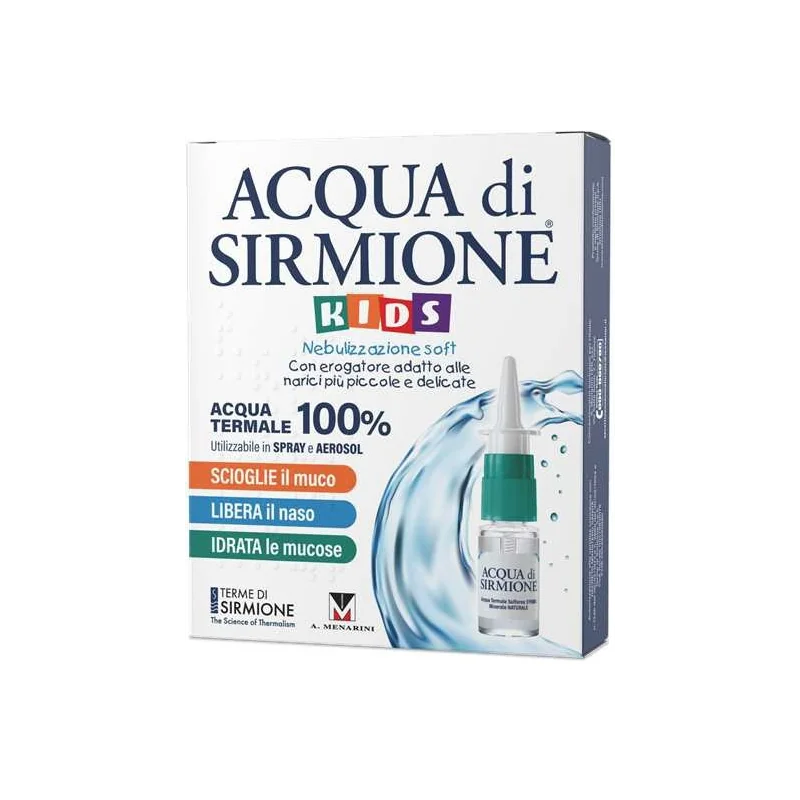 Acqua Di Sirmione Kids Nebulizzazione Soft Acqua Termale 100% 6 Flaconcini Pluridose X per l'igiene quotidiana delle secrezioni catarrali del naso e della gola.