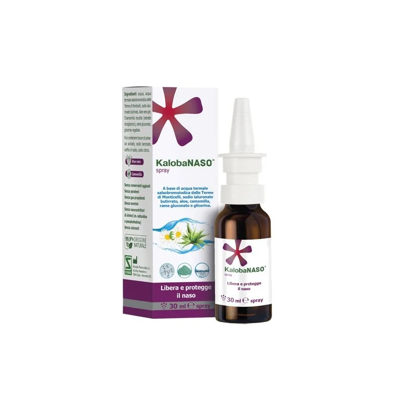 KalobaNaso è uno spray nasale decongestionante e protettivo, che idrata e lenisce la mucosa irritata favorendone la rigenerazione anche in caso di piccole lesioni. Fluidifica il muco, riduce l'infiammazione e libera il naso in caso di raffreddore, rinite e rinorrea. Senza conservanti aggiunti. Senza parabeni. Senza gas propellenti. Senza mentolo. Senza vasocostrittori di sintesi (es. nafazolina e pseudofedrina). Senza colorati.