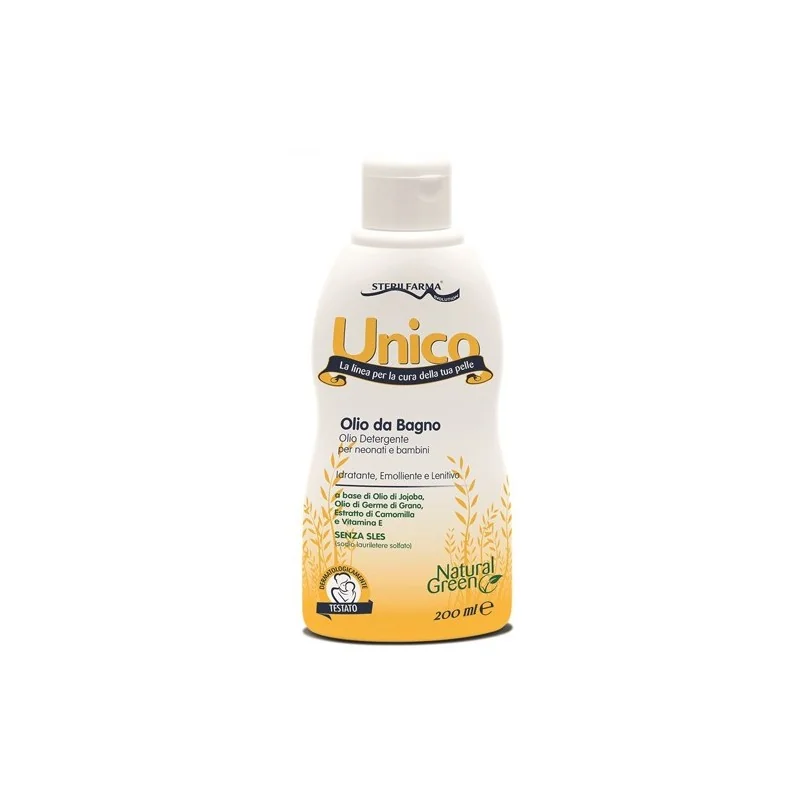 Unico Olio da Bagno svolge una delicata azione detergente, idratante, emolliente e lenitiva; nutre ed ammorbidisce anche pelli particolarmente secche, riequilibrando la normale fisiologia del film idrolipidico.