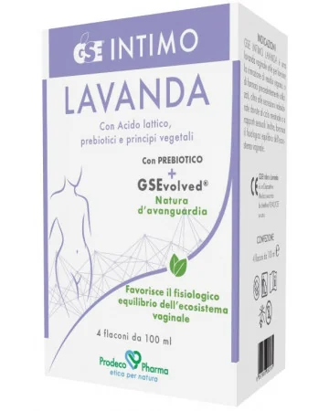 GSE INTIMO LAVANDA è una lavanda ad uso vaginale che grazie alla presenza dell’acqua di Camomilla e dell’acqua di Calendula ha un’azione meccanica di lavaggio utile a rimuovere residui organici o farmaci precedentemente utilizzati, oltre alle secrezioni indesiderate dovute al ciclo mestruale o a rapporti sessuali, in caso di abbondanti secrezioni o dopo l’uso di contraccettivi locali. Gli Alfa-glucoligosaccaridi sostengono la flora batterica locale in sinergia con l’Acido lattico e il pH fisiologico della soluzione. L’Estratto di semi di Pompelmo favorisce il controllo microbiologico della zona trattata. Inoltre le proprietà delle acque di Camomilla e Calendula e il gel di Aloe rinfrescano e leniscono la muscosa vaginale. GSE INTIMO LAVANDA è quindi utile per favorire il fisiologico equilibrio dell’ecosistema vaginale.