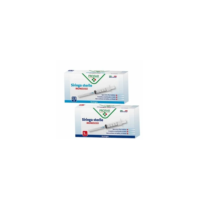 Disponibile in confezioni contenenti 10 pezzi da 2,5 ml e 5 ml.