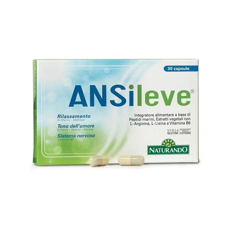 Integratore alimentare a base di Cyracos (estratto secco di melissa), peptidi marini idrolizzati, rodiola, griffonia, L-arginina, L-lisina e vitamina B6.