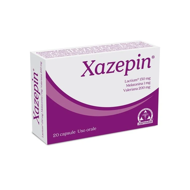 Xazepin è un integratore alimentare che contiene lactium (caseina parzialmente idrolizzata), melatonina e valeriana.