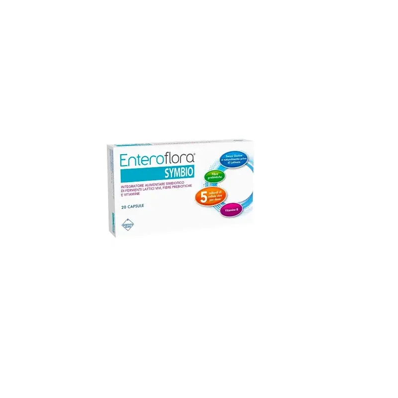 Contiene 4 ceppi di fermenti lattici vivi liofilizzati più frutto-oligosaccaridi ad azione prebiotica; l'apporto di queste sostanze ad azione simbiotica alla flora batterica intestinale è utile in casi di alterazione della stessa. Enteroflora Symbio, assunto prima dei pasti, fornisce un apporto di vitamine del gruppo B che contribuiscono al normale metabolismo energetico. La vitamina B6 contribuisce inoltre alla normale funzione del sistema immunitario. Adatto a diete vegane.
