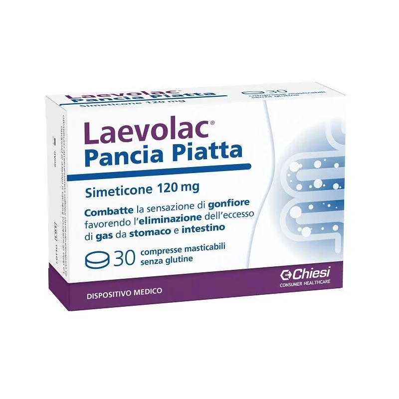 Laevolac Pancia Piatta è un integratore a base di simeticone, dotato della proprietà di abbassare la tensione superficiale e consentire la dissoluzione delle bolle di gas presenti nel tratto gastrointestinale. Il simeticone agisce in modo meccanico fisiologico, senza dare assuefazione. E' indicato nel trattamento dei gonfiori gastrointestinali, flatulenza e meteorismo in quanto favorisce la dispersione del gas in eccesso presente nello stomaco e nell'intestino. Senza glutine.