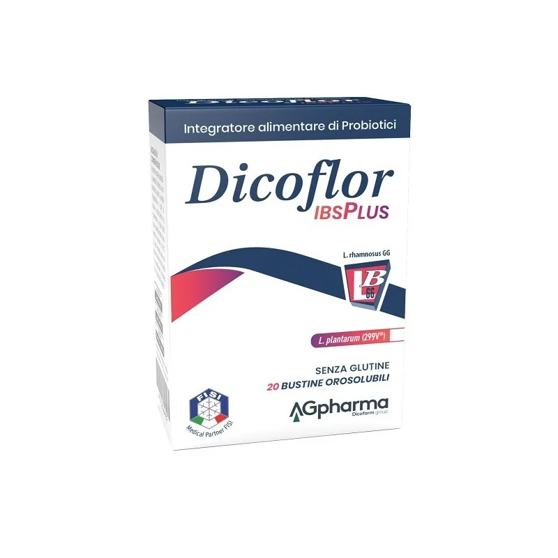 Dicoflor IBS plus è un'integratore alimentare a base di probiotici, L. rhamnosus GG, L. plantarum (299V), indicato per favorire l'equilibrio della flora batterica intestinale.
