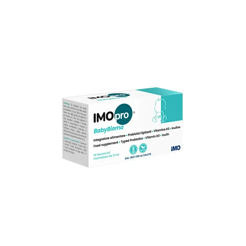 1 flaconcino al giorno da assumere lontano dai pasti, preferibilmente al mattino. In caso di contemporanea somministrazione di terapie antibiotiche, si raccomanda di assumere IMOpro BabyBioma almeno 2 ore dopo l'assunzione può Può essere assunto nell'ambito di una dieta vegetariana.