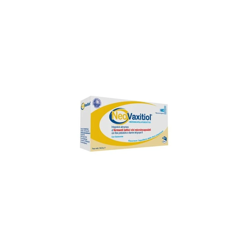Integratore alimentare a base di fermenti lattici vivi microincapsulati e vitamine del gruppo B. Favorisce l'equilibrio della flora intestinale. NeoVaxitiol è indicato per favorire il ripristino del fisiologico equilibrio della flora batterica intestinale che può essere alterato da squilibri alimentare o terapie antibiotiche. Inoltre, la vitamina B6 contribuisce alla normale funzione del sistema immunitario.
