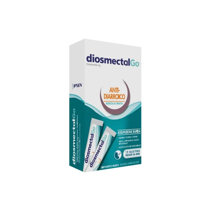 Dispositivo medico, sospensione pronta da bere, in bustine monodose per somministrazione orale. DiosmectalGo è indicato per: