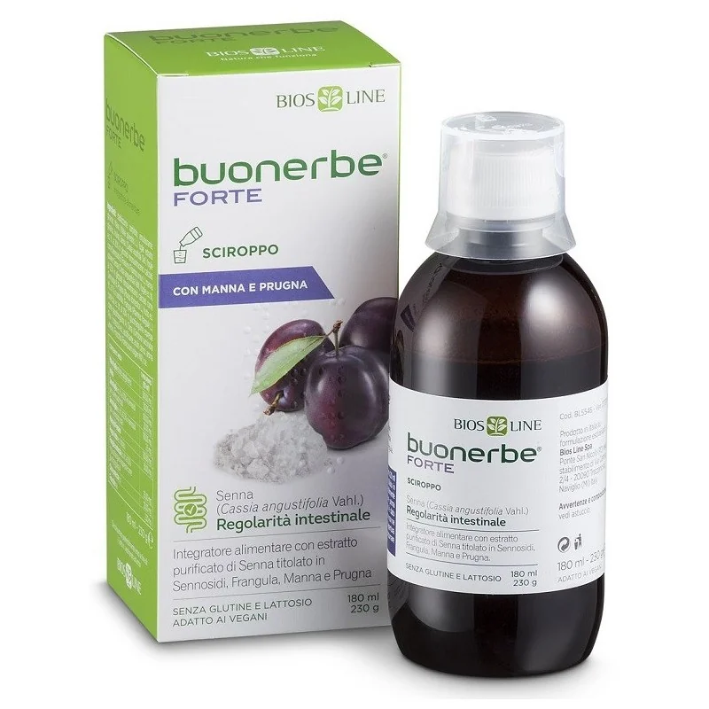 Buonerbe Forte sciroppo favorisce il regolare transito intestinale grazie alla sua formulazione a base di estratto purificato di Senna, titolato al 20% in sennosidi, e di estratto di Frangula, titolato al 20% in glucofranguline, mentre la Malva svolge un'azione emolliente e lenitiva sulla mucosa intestinale. Buonerbe Forte sciroppo contiene inoltre Manna da Frassino, che favorisce una normale consistenza delle feci ed estratto di Prugna, ricca in sorbitolo.