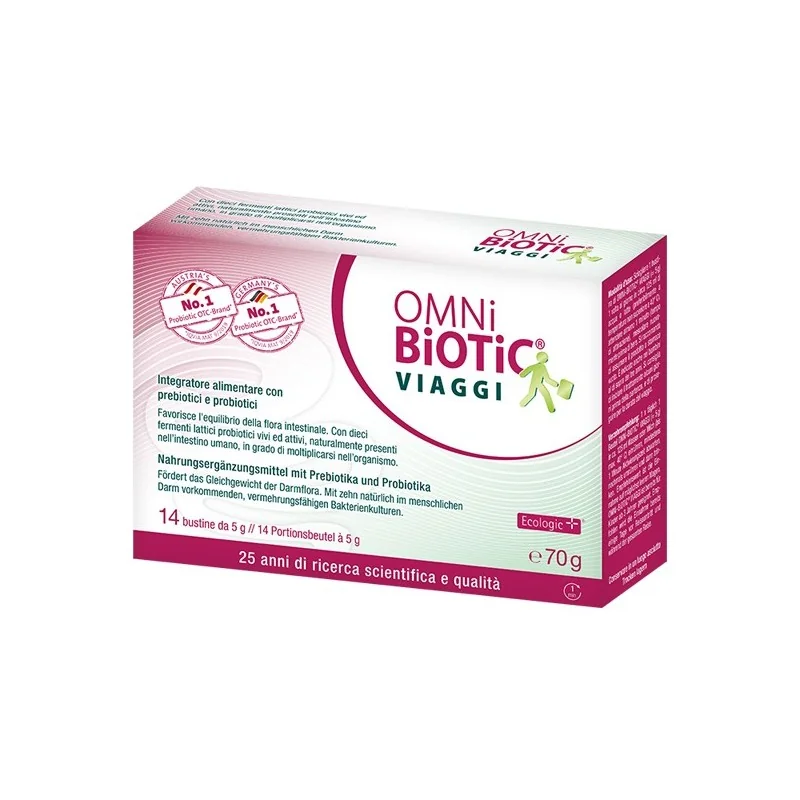 Sciogliere 1 bustina di OMNi-BiOTiC VIAGGI (5 g) 1 volta al giorno in circa 125 ml di acqua, yogurt, latte o tè tiepido (temperatura massima 40 °C), attendere almeno 1 minuto (tempo di attivazione), mescolare nuovamente prima di bere.