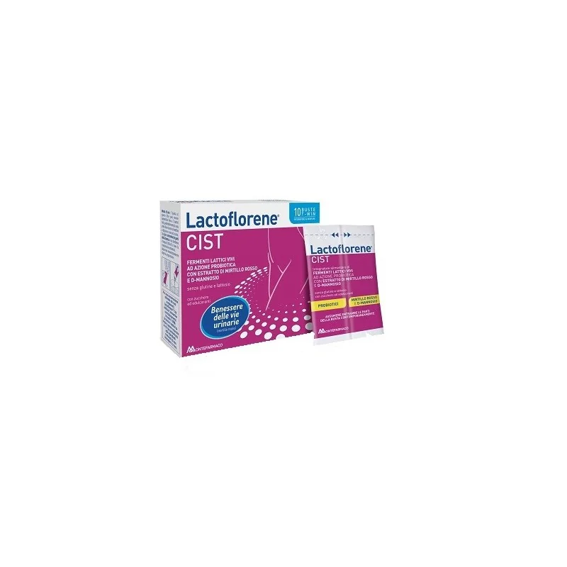 Lactoflorene Cist Integratore per la Cistite è un prodotto alimentare a base di fermenti lattici vivi ad azione probiotica arricchito con estratto di mirtillo rosso (cranberry) e D-mannosio. I fermenti lattici favoriscono l’equilibrio della flora batterica intestinale mentre il mirtillo rosso contribuisce alle funzionalità delle vie urinarie. La formulazione inoltre previene la recidiva di infezioni. Senza glutine e lattosio.