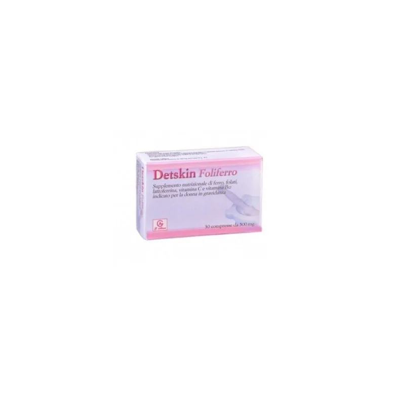 Detskin Foliferro è indicato per la donna in gravidanza, è un supplemento nutrizionale di Ferro, Folati, Lattoferrina, Vitamina C e B12.Caratteristiche nutrizionali