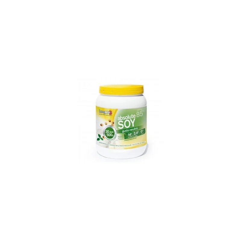 Longlife Absolute Soy Integratore Proteico di Soia è un prodotto alimentare di proteine ad elevato valore biologico utile nelle situazioni di ridotto apporto con la razione alimentare o di aumentato fabbisogno. Le proteine contribuiscono alla crescita e al mantenimento della massa muscolare e aiutano la salute delle ossa. Absolute SOY contiene proteine di soia (Glycine max L. Merr.) in polvere ad elevata biodisponibilità e solubilità, provenienti da coltivazioni non OGM. Absolute SOY essendo un prodotto 100% vegetale, è adatto alle persone intolleranti al lattosio o alle proteine del latte e ai vegani. Senza glutine, lattosio e senza OGM.