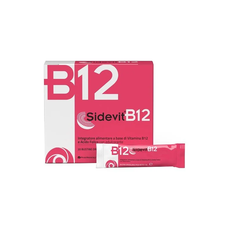 Integratore alimentare a base di UltraB12-vitamina B12 sucrosomiale e acido folico (Quatrefolic), utile per colmare le carenze alimentari o gli aumentati fabbisogni organici di questi nutrienti. Sidevit B12, grazie alla presenza di vitamina B12 e acido folico, contribuisce alla riduzione di stanchezza ed affaticamento. Inoltre, grazie alla vitamina B12 contribuisce al normale metabolismo energetico.