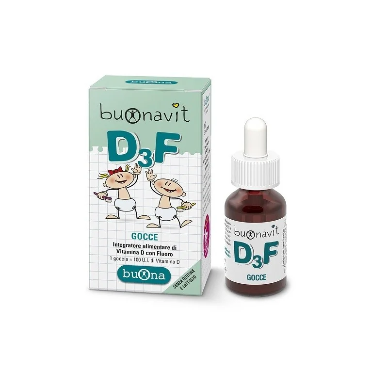BuOnavit D3F è un integratore alimentare a base di Vitamina D3 e Fluoro. La Vitamina D3 è importante per il mantenimento della struttura di ossa e denti normali; il Fluoro favorisce la mineralizzazione dei denti.