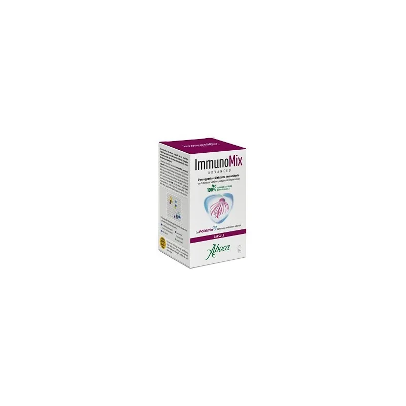 Aboca Immunomix advanced capsule nasce come integratore alimentare a sostegno del sistema immunitario del nostro organismo grazie alla presenza di componenti completamente naturali come l’Echinacea, il Sambuco, lo Zenzero e l’Eleuterococco. La presenza di quest’ultimo componente in particolare lo rende un prodotto multifattoriale in quanto può essere assunto in tutti quei casi in cui si verifichi debolezza, spossatezza e stanchezza sia fisica che mentale.