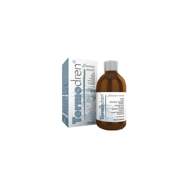 Termodren Sciroppo è un complemento alimentare liquido formulato con una sinergia di estratti vegetali tra cui Ortica, Gramigna, Tarassaco, Ortosifon, Arancio amaro, Thè verde, Undaria pinnatifida, Liquirizia, arricchito con Acido Pantotenico e Vitamina B6. Nello specifico, Termodren Sciroppo è progettato per coloro che necessitano di un supporto naturale nel controllo del peso e nella funzione depurativa dell'organismo.