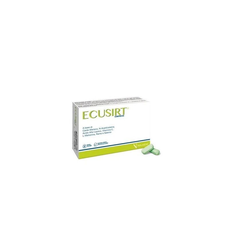 ECUSIRT® compresse è un complemento alimentare a base di Cardo Mariano, N-Acetilcisteina, Acido Alfa-Lipoico, Vitamina C, L-Metionina, Rame e Selenio. Il Cardo Mariano sostiene la funzione epatica e le funzioni depurative dell’organismo. La Vitamina C, il Selenio e il Rame contribuiscono alla protezione delle cellule dallo stress ossidativo.