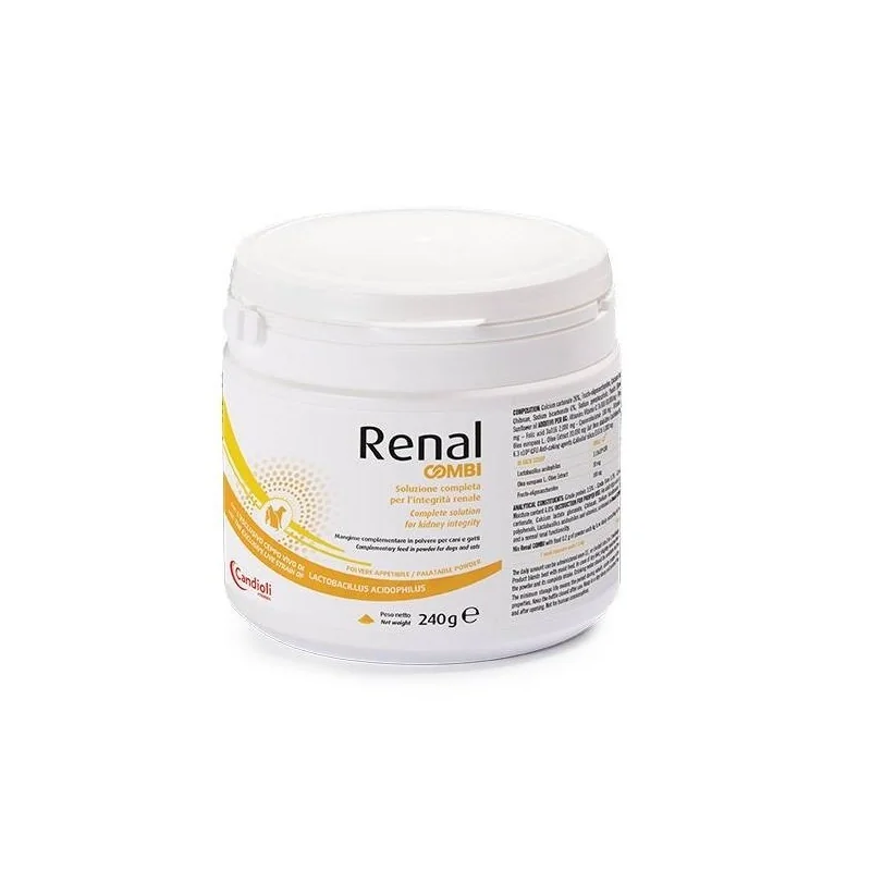 DescrizionePer cani e gatti adulti. Renal COMBI apporta carbonato di calcio, gluconato di lattato di calcio, chitosano, bicarbonato di sodio.