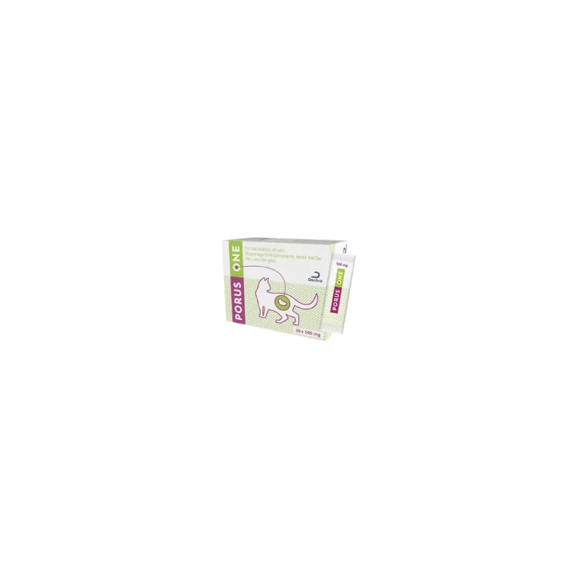 Il dossaggio raccomandato di Porus One è 1 bustina (500 mg) per gatto al giorno.