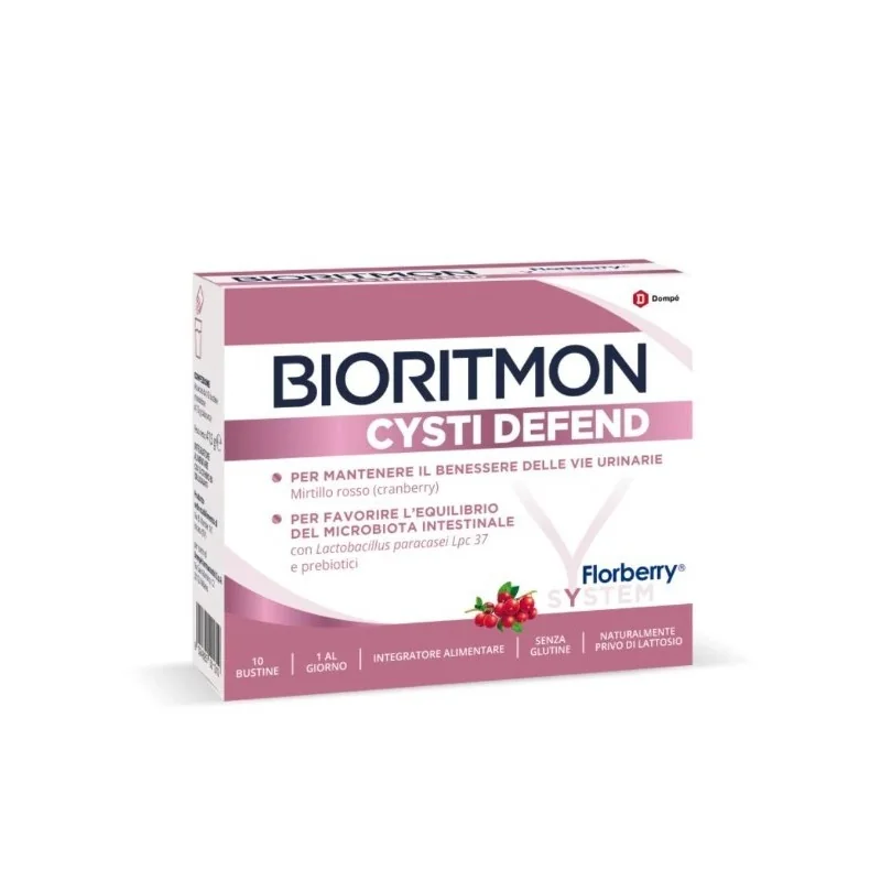 Nella sua formulazione sono presenti probiotici (Lactobacillus paracasei) e prebiotici che favoriscono la stabilità della flora batterica intestinale che in caso di squilibrio potrebbe causare infezioni urinarie. Bioritmon Cysti Defend può essere assunto per la prevenzione di episodi di cistite o in caso di sintomi lievi.