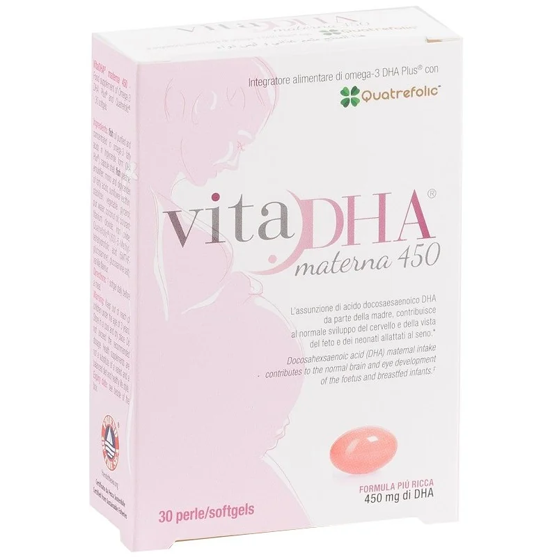 VitaDHA Materna 450 è particolarmente indicato in caso di ridotto apporto di tali nutrienti con l'alimentazione o di aumentato fabbisogno, in particolar modo durante il periodo periconcezionale, in gravidanza e allattamento.