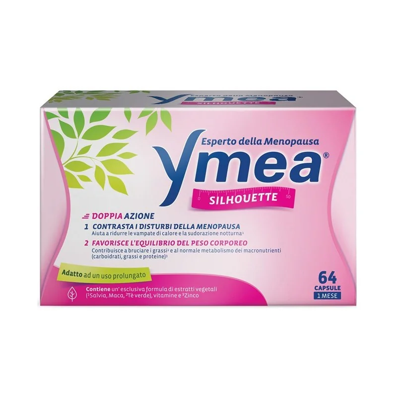 Ymea Silhoutte Integratore per la Menopausa è un Integratore alimentare a doppia azione, adatto ad un uso prolungato. Contiene una formula di estratti vegetali (salvia, maca, tè verde), vitamina e zinco che contrasta i sintomi della menopausa come vampate di calore e sudorazione notturna, favorendo il controllo del peso.