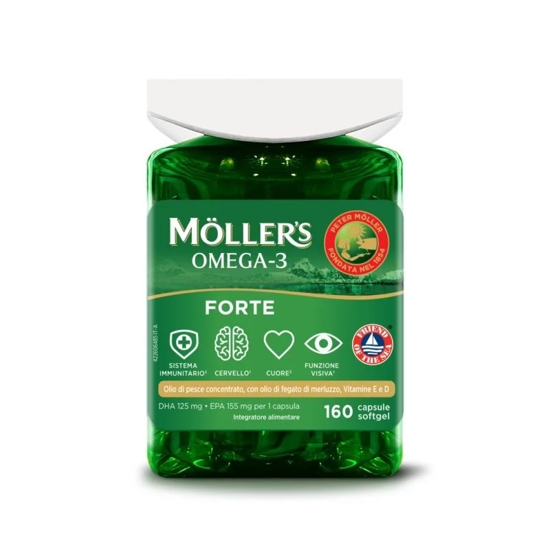 • 1 capsula di Moller's Omega 3 Forte promuove la funzionalità dell'apparato cardiovascolare